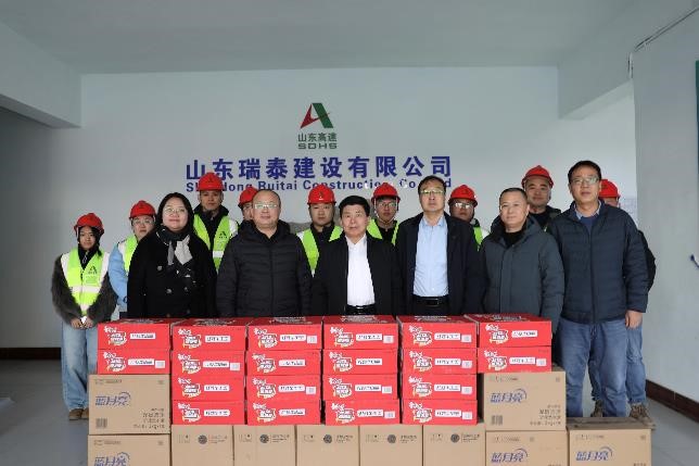 2月11日,公司黨委副書(shū)記、總經(jīng)理、董事劉漢興一行到瑞泰公司S236辛濱線濱城繞城段改建工程施工一標(biāo)段項(xiàng)目經(jīng)理部慰問(wèn)一線員工。公司黨委委員、工會(huì)主席、職工董事于光,黨委委員、副總經(jīng)理、安全總監(jiān)張繼軍陪同。